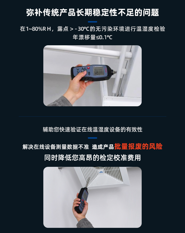 ●長期穩(wěn)定性:?年漂移量≤0.1°C(在無污染環(huán)境進行溫濕度檢驗