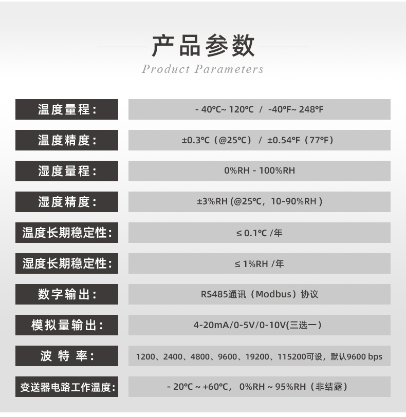 ●數(shù)字信號(hào)輸出型,溫度默認(rèn)攝氏度℃單位,也可選擇定制華氏度℉單位