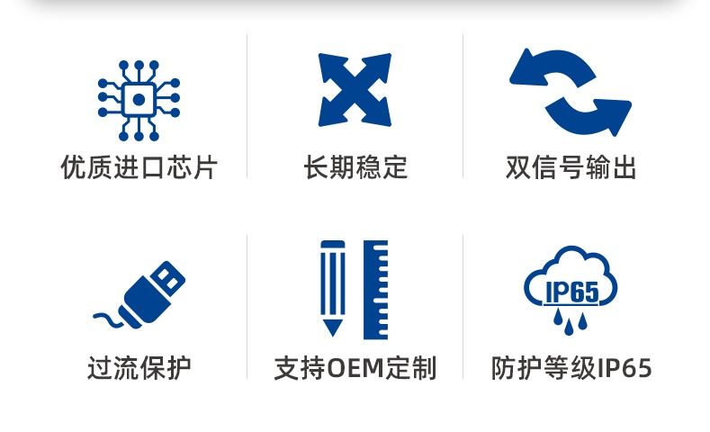 ●模擬量輸出型,支持4-20mA或0-5V或0-10V + RS485(依據(jù)不同型號(hào)對(duì)應(yīng)不同模擬量輸出)